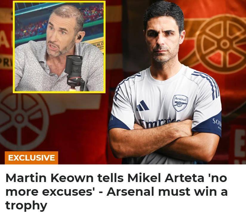 英国媒体talkSPORT电台报道,阿森纳名宿基翁警告阿尔特塔,“别再找借口了!”基翁表示,本赛季阿森纳必须要拿到一个奖杯,因为阿森纳和枪手球迷都已经等不及了。